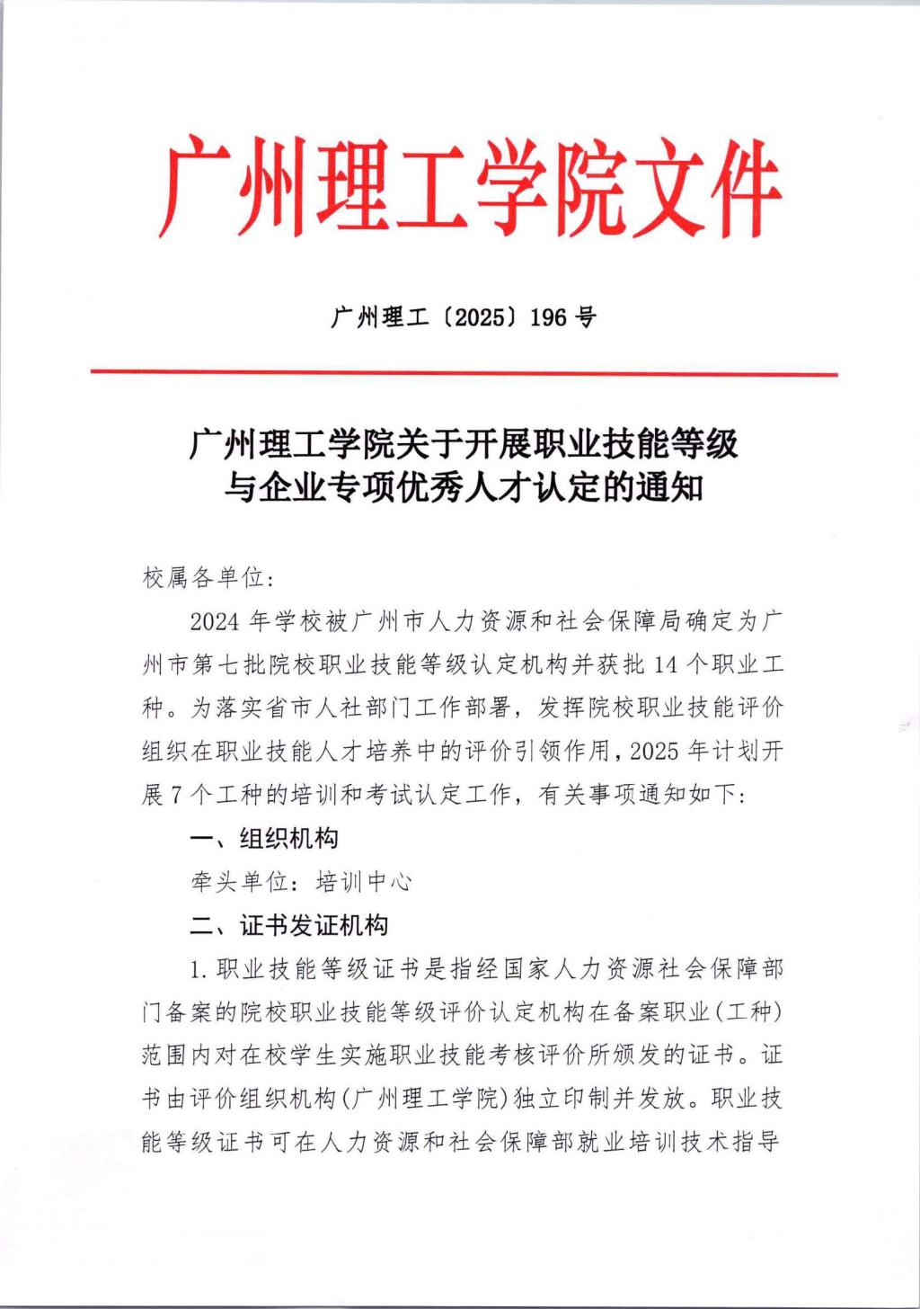 关于开展职业技能等级与企业专项优秀人才认定的通知(广州理工〔2025〕196号)