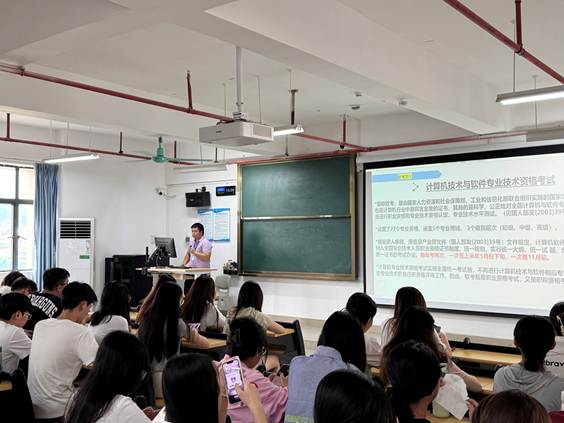 此次讲座在同学踊跃报名和学校大力支持下顺利开展。主讲老师系统讲解了计算机专业的职业发展路径、软考在职业资格和求职竞争力中的作用,明确讲解未来职业发展道路的选择。