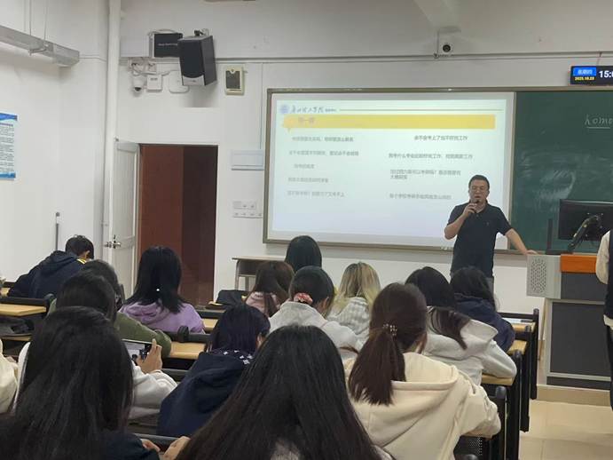 讲座开篇,廖老师以 “你的人生如何选择” 为引,与现场学子展开深度交流。他表示,考研并非唯一出路,但却是提升专业能力、拓宽职业边界的重要途径。“选择考研前,要明确自身需求——是为深耕学术,还是为突破行业门槛?只有清晰目标,才能在备考路上坚定前行。” 同时,他结合艺术设计行业对高学历人才需求增长的现状,鼓励学子根据自身职业规划,理性做出选择,让考研成为实现人生价值的助力。