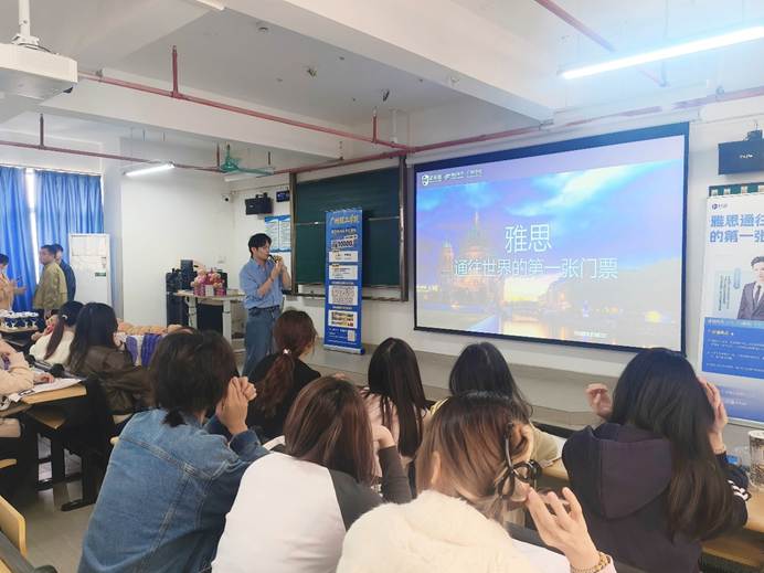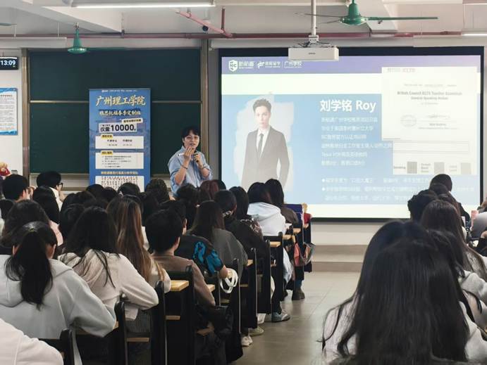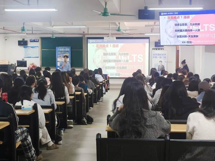 为助力在校大学生科学规划雅思备考、拓宽升学与就业路径,新航道广州学校于3月5日中午在我校13教701教室成功举办“雅思通往世界的第一张门票”主题讲座。本次活动由新航道广州学校雅思项目总监刘学铭老师主讲,现场座无虚席,广理学子参与热情高涨。